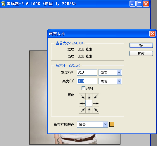 之后调整图片尺寸,比如你想做成310*310这么大的,那么你要先把一个边裁成310,如下图: